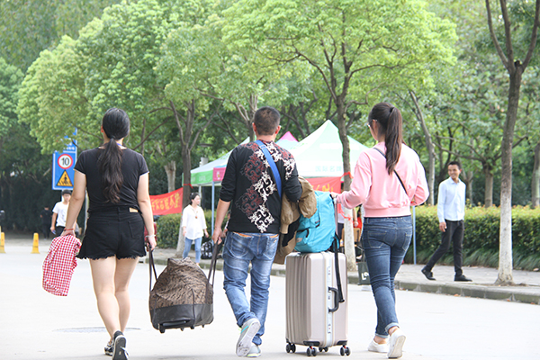 身穿简单的条纹衫与浅色牛仔裤,拖着一个简单的行李箱,最显眼的是身后那把大大的吉他,看起来似乎是艺术生的齐超,其实来自土木与环境工程学院。提及为什么带着吉他来学校,本来有些腼腆的他,很高兴地回答道:“因为很喜欢啊!而且听说学校里有很多有关音乐的社团,我也很想加入他们一起交流。大学生活嘛,总得有趣一点。”就是这样看起来很文艺的男生,选择的却是别人看起来似乎有点枯燥的建筑学专业,其实他早就做好了细致的打算,“我不仅喜欢音乐,也很喜欢画画,所以我不觉得我选择的专业很枯燥。在之前我就有了解过,学校有很好的学习资源,我打算大一先把英语四级考过,再慢慢准备考研,把目标定高一点,结果总不至于太差。”