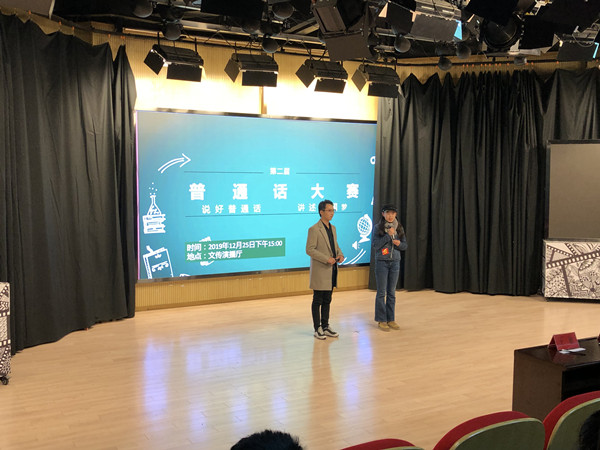 本网讯(通讯员:夏岩)为了响应国家推广普通话的行动,深入贯彻落实国家对于推广普通话的政策,使同学们对普通话高度重视,树立学好、说好普通话的意识,自觉地维护普通话的地位,身体力行地为解决各种推广普通话所遭遇的障碍贡献自己的力量。12月24日,文化与新闻传播学院举办了“说好普通话,讲述中国梦”第二届普通话大赛。文化与新闻传播学院副院长洪玉、艺术表演系主任潘驰群以及播音与主持艺术专业全体教师出席并担任此次比赛的评委。