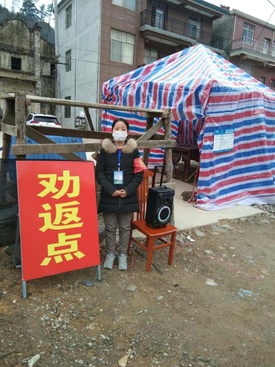 祝夏丽,系财会与金融学院第一学生党支部正式党员,为协助村里做好新型冠状病毒预防工作,她主动申请参加安徽省池州市东至县木塔乡木塔村的防疫工作,从早8:00到晚21:00检查进出人员动态,认真履行一名党员的责任和义务。工作地点虽然简陋,但她的心却是热忱的。