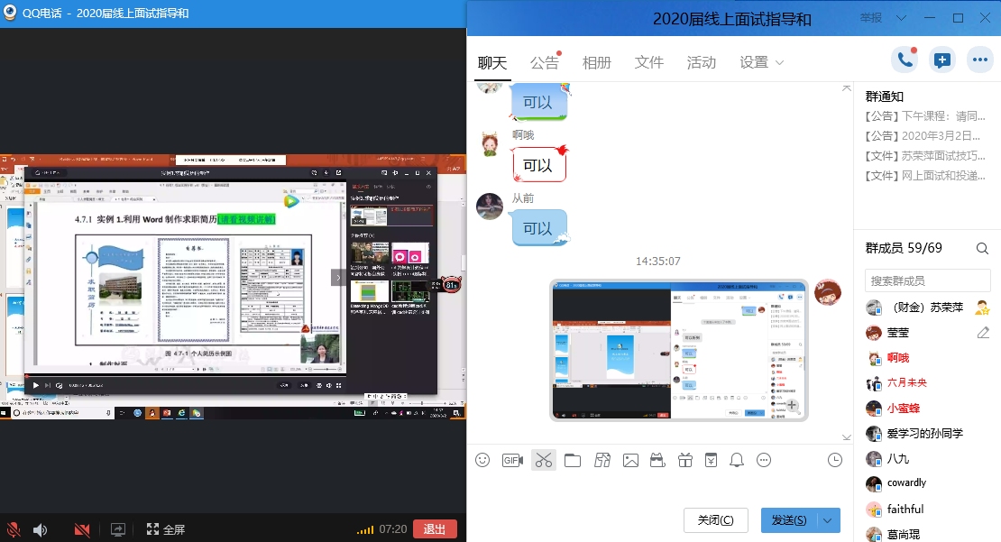 本网讯(通讯员:魏银银)鉴于目前新型冠状病毒感染的肺炎疫情新形势,根据财会与金融学院“金财未来”2020届毕业生就业工作方案,3月2日,财会与金融学院开展线上“云求职背景下线上面试指导会”,指导会由苏荣萍老师主讲,朱敏老师、余静老师参与指导,部分2020届毕业生参与。会议由行政秘书主持。