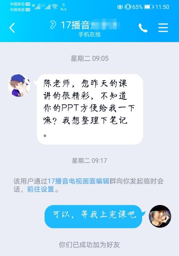 当每个知识点被一一击破的时候,学生们会不由自主为老师“打赏”,并肯定老师所教授的内容。此外,他积极与媒体一线工作人员联系,获取一手资源,丰富课堂教学案例,很好地调动了学生对于课程学习的热情。他的线上教学效果得到了院领导、同事、学生的一致认可与肯定。