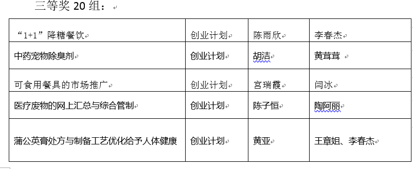 本网讯(通讯员:赵影)药学院高度重视培养在校大学生的创新创业意识。2月,新冠病毒疫情期间,响应党中央停课不停学的号召,药学院在严抓线上教学质量的同时,高度重视学生第二课堂综合素质提高,在全院范围内开展创青春比赛,学工人员各班级内进行广泛宣传,鼓励同学们积极参赛,全体教师参与竞赛指导。药学院院赛参赛人数达300人,共组队50组。通过评委的线上打分综合评定后,遴选出十组参加校级比赛。院赛评选出一等奖、二等奖和三等奖团队。获奖组别分别为: