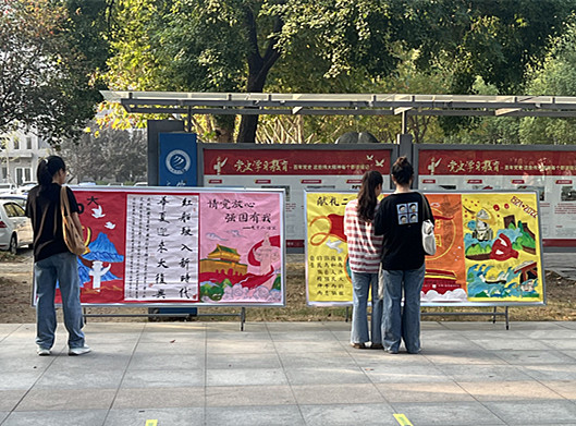 本网讯(通讯员:杨宏)丹青吐彩,翰墨飘香。为迎接党的二十大胜利召开,深入学习贯彻习近平新时代中国特色社会主义思想,教育引导学生传承红色基因,提升学生爱党敬党的意识,电智学院学生党总支于10月8日举办了“喜迎二十大,永远跟党走”主题海报展。