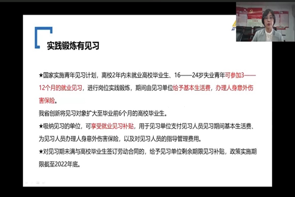随后,安徽省“启明星”就业指导专家、第四届合肥都市圈十佳HR经理人、合肥市技术能手孙自婷老师以《高校毕业生就业创业政策解读与职业生涯规划》为主题,通过未来大学生就业方向、怎样找工作、面试官问题结构、简历如何敲开求职大门、如何创业成功等多个方面介绍了职业生涯规划的真正意义,针对当代毕业生就业压力大,求职方向不明确等问题,提出了自己独到的见解。本次宣讲会使同学们认清了当前就业创业政策形势,为毕业生就业提出了可行的渠道建议,有效地帮助毕业生充分认识自我、端正就业态度、树立求职目标。