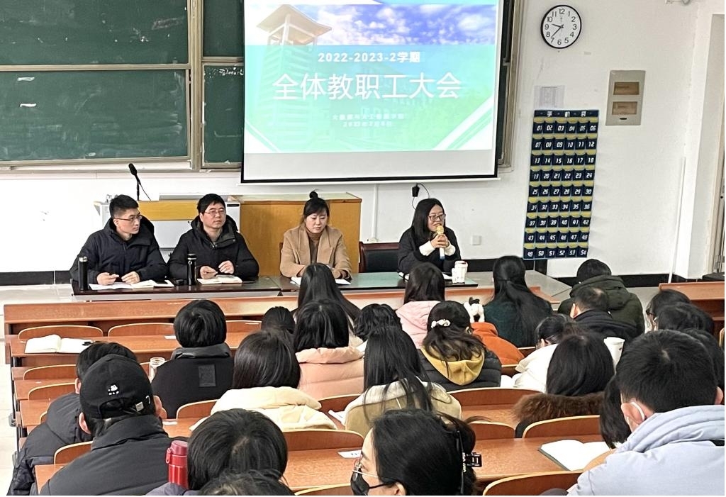 首先,院长助理刘磊就2022-2023第二学期期初的复习答疑落实、毕业论文、实验实习报告自查、人才培养方案制修订等期初教学工作做了部署和安排,并提醒教师们做好2023届毕业论文中期检查的准备。