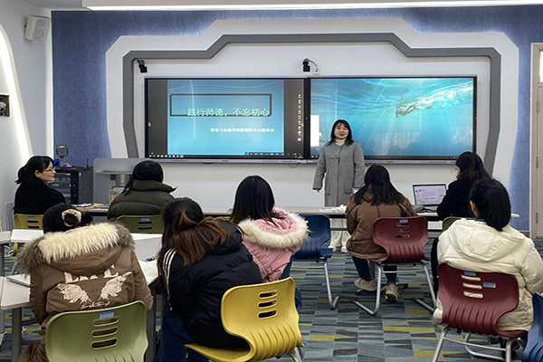 践行师德,不忘初心。贾婷婷老师提出师德是教师人格的直接体现,积极引导青年教师建设坚守师德初心、保持作风优良的高素质教研团队。