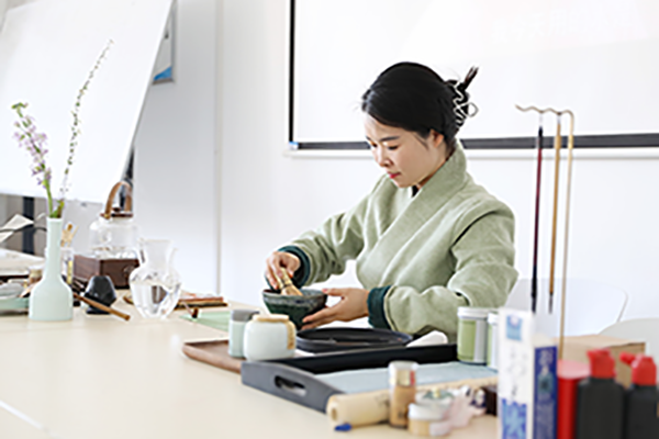 “这堂课极大提高了我的绘画速度,平时在纸上画作业磨磨蹭蹭,但是在茶上画就得被迫提高速度,否则点出的茶沫消散了,也承托不了我的画了。同时这堂课也让我深深感受到了传统文化技艺的魅力。”22级风景园林学生魏宇何说,有部分同学希望能有相关的拓展课程,深入学习和体验与专业课程相关的非遗项目。