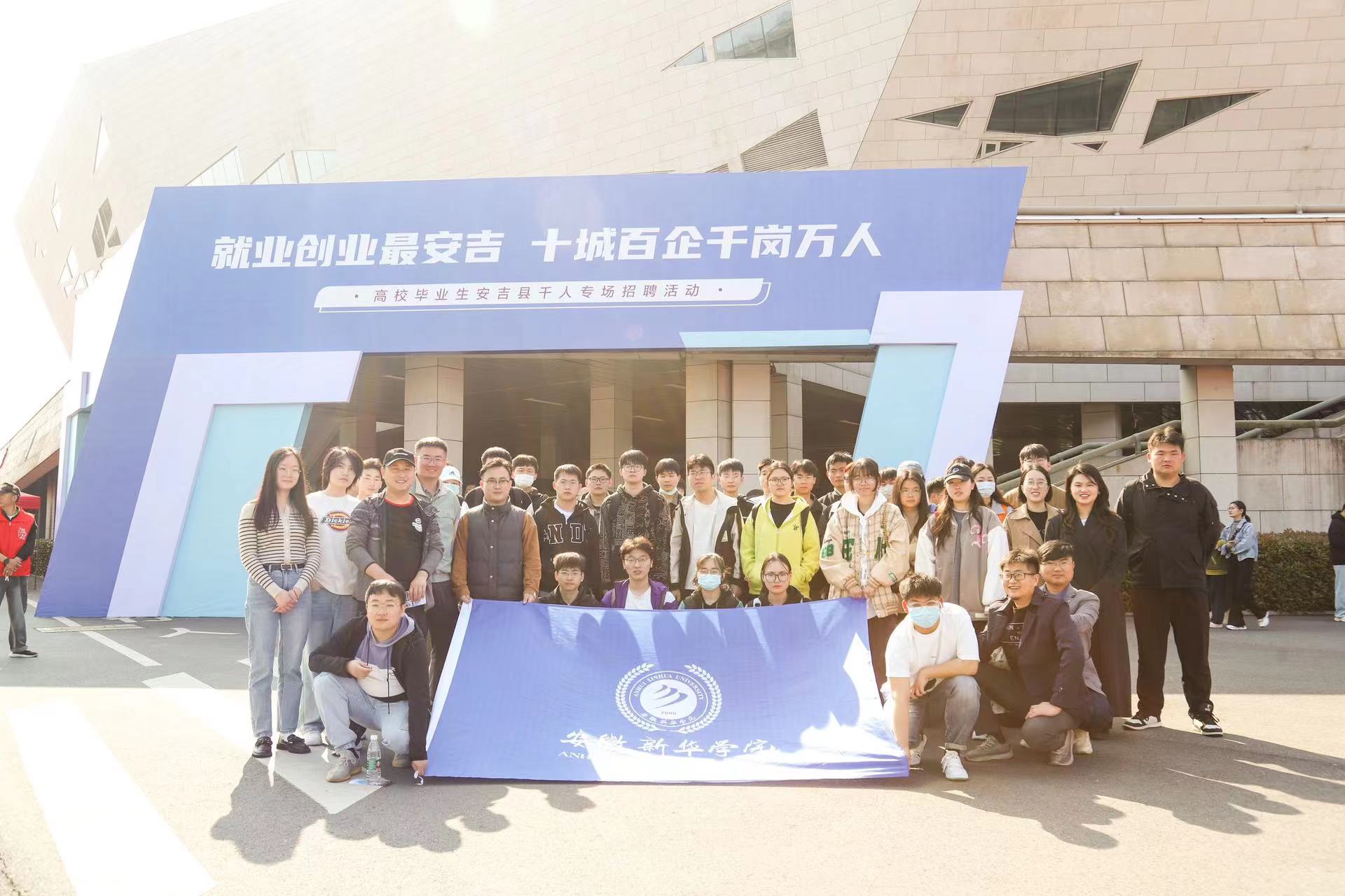 本网讯(通讯员:张小菊)4月26日,“就业创业最安吉”——“十城百企千岗万人”高校毕业生千人专场招聘会在浙江省湖州市安吉县安吉龙山体育馆召开。我院领导高度重视,精心组织毕业生报名参加本次招聘会,由艺术学院行政兼学管秘书张小菊,专业教师崔学勇,毕业班辅导员李丹阳及24名相关专业毕业生代表赴湖州安吉参加本次招聘会,深入了解企业用人需求信息,现场精准推介毕业生就业,将校地合作落实落地。