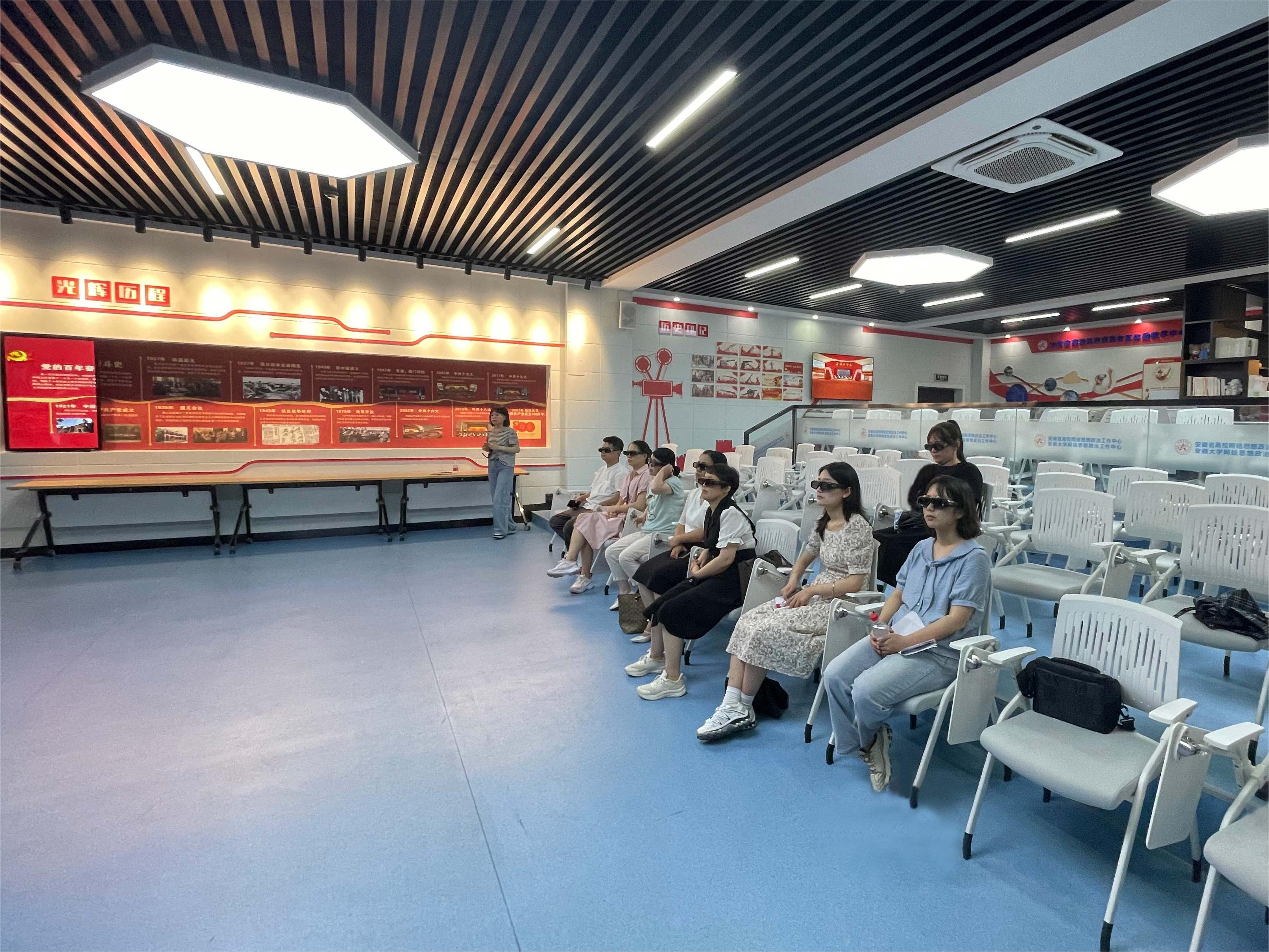 随后,必赢调研人员参观了安徽省高校思政虚拟仿真体验教学中心,在“视听触”的虚拟仿真环境中游览红色展馆、体验百年党史、感悟革命精神。