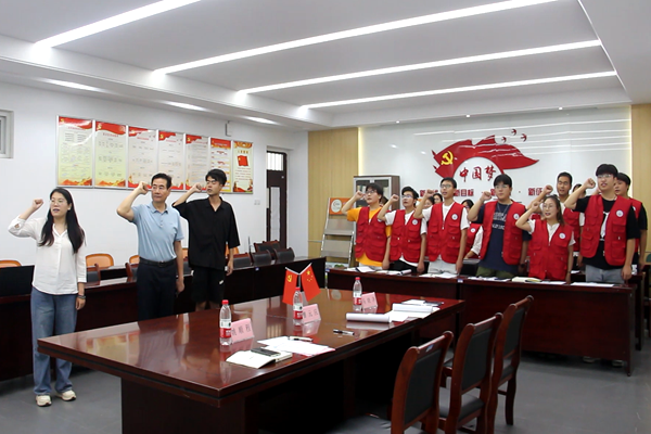 6月29日下午,“华园药院青年”实践团队前往界首市博物馆开展“寻忆红色征程、赓续红色血脉”活动。在博物馆讲解员的带领下,“华园药院青年”实践团队深入了解当地的红色历史文化,在历史文化展厅领悟到张大桥保卫战之震撼,于臧家公馆回望界首旧事,并在乔道三雕像前感悟其爱党爱民,清正廉洁的作风。最后,实践团队成员在乔道三像前宣誓,重温入党誓词,缅怀革命先烈。