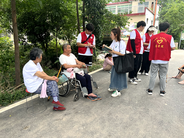 6月29日上午,实践团队开展体质检测、药品安全知识普及、五禽戏教学与食品安全宣传等活动。活动期间实践团队成员详细询问村民身体状况、耐心检查,并检测身高体重、血压及脉搏,检测结束后,实践团队成员将村民体检数据填入健康记录表中,并整理好交给村委会留存。