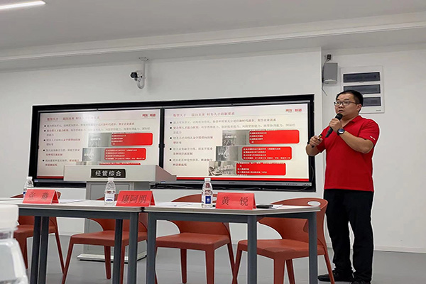 黄锐就“产教融合,校企共育数智财务人才”主题从云财务产业学院概况、历届学生成长成果以及数智人才培养三个方面向新生家长们作了汇报,他指出财务管理(用友新道卓越班)是校企育人协同推进学生全方面发展,注重全人教育模式,共建立体实践教育,重点培养具有创新精神和国际视野的复合型应用型高素质人才。汇报后家长对学生在校四年的专业学习有了深入了解,也对孩子的未来职业规划有了清晰认识。