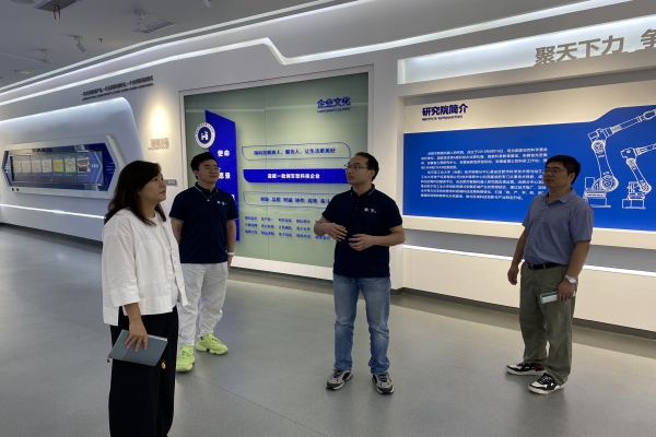 郑妮一行首先参观了合肥市智能机器人研究院哈工大科技展厅,深入了解了研究院发展历史和智能机器人设备研发情况。