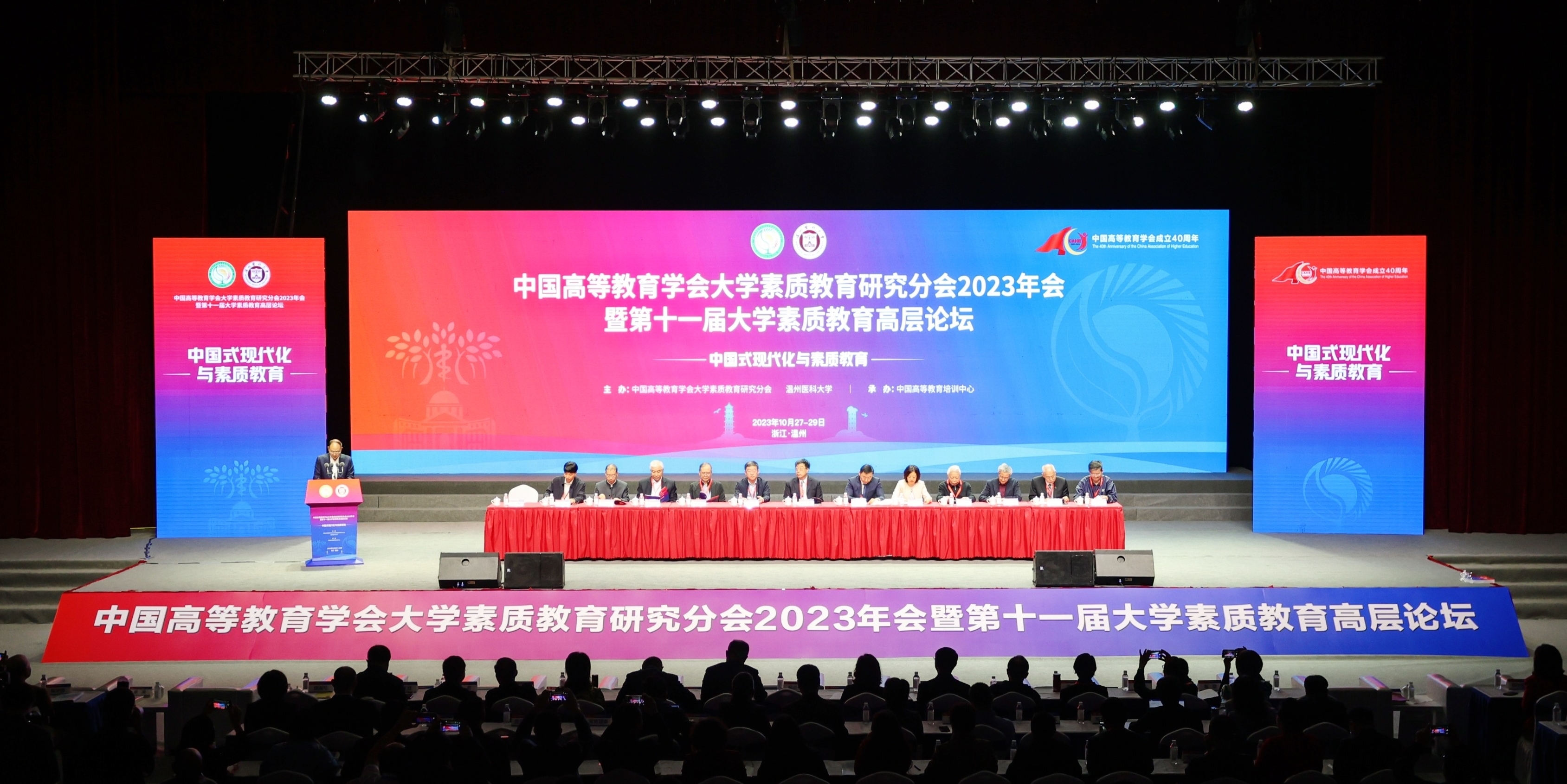 本网讯(通讯员:李彩平)10月27日至29日,中国高等教育学会大学素质教育研究分会2023年会暨第十一届大学素质教育高层论坛在浙江温州隆重召开。本次论坛由中国高等教育学会大学素质教育研究分会与温州医科大学联合主办、中国高等教育培训中心承办。论坛主题为“中国式现代化与素质教育”。来自140余所高校的400余名与会代表参会。线上通过中国高等教育培训中心、人民网文化在线、浙江卫视中国蓝新闻矩阵等平台进行直播,共有6.4万人次收看了开幕式及大会报告。必赢大学生素质教育研究中心主任刘瑞平,主管李彩平和中心兼职研究员毛宗山、徐莉参加了此次论坛。