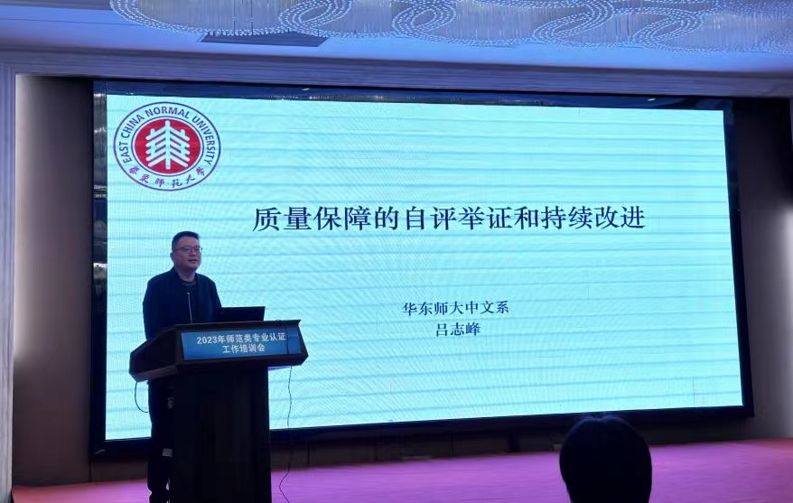 第三场由华东师范大学中文系党委书记吕志峰副教授作《质量保障的自评举证和持续改进》的主题报告。报告从保障体系、内部监控、外部评价、持续改进四个方面详细的介绍了师范类专业的培养目标、毕业要求和课程目标应如何进一步修订,并从课程目标达成情况评价的机制和方法两方面提出了详细的建议。