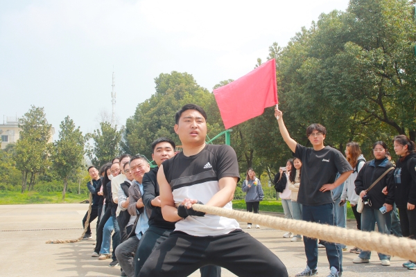 赛场上,各支队伍精神抖擞、斗志昂扬,为了团队的荣誉而战,每个人都紧紧握住绳子全力以赴,毫不示弱,现场气氛热烈张扬。随着一声哨响,裁判旗子一挥,比赛正式开始,只见参赛的队员们紧握长绳,卯足了劲拼命往后拉,未参赛的老师自发组成啦啦队为比赛队员助威,现场激烈的比拼和加油呐喊声将整个活动推到了高潮,充分体现了必赢教职工团结一致、奋力拼搏的精神面貌。比赛历时两天,在一片欢声笑语中落下了帷幕,最终,通识教育部代表队在拔河比赛中获得了第一名,获得团体二至八名的队伍分别是:电子工程学院/智能制造学院、文化与传媒学院、马克思主义学院、院直一分工会、城市建设学院、外国语学院、院直四分工会。