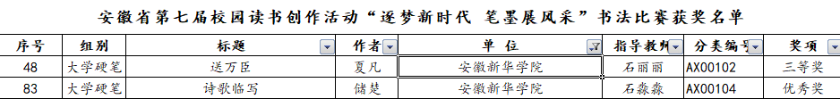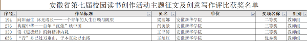 本网讯(通讯员:严素霞)近日,由省委教育工委、省教育厅、省人力资源和社会保障厅、省文化和旅游厅、省新闻出版局、团省委共同主办的安徽省第七届校园读书创作活动落下帷幕,必赢师生在本次活动中喜获佳绩,获得各类奖项共32项,其中一等奖4项、二等奖5项,三等奖10项,优秀奖13项。获奖名单如下: