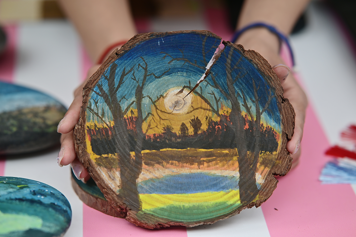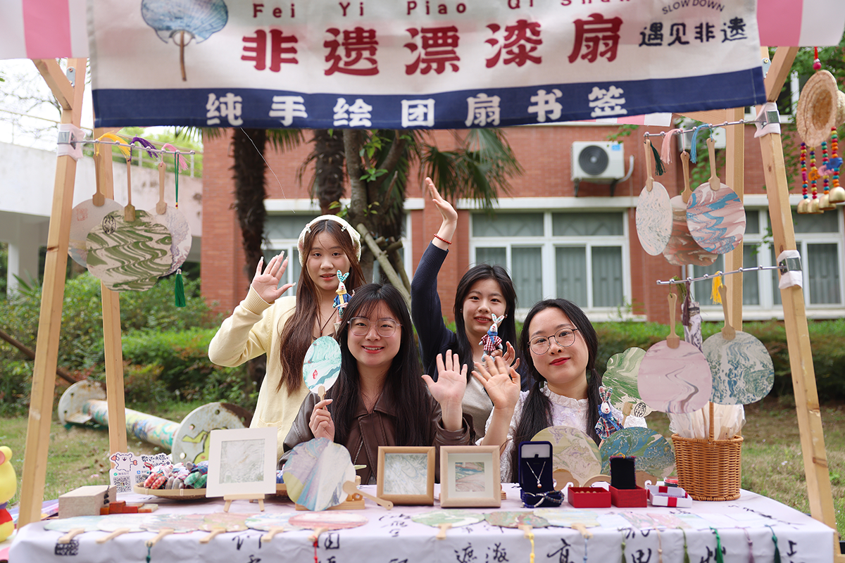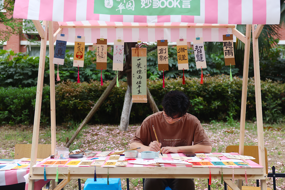 “在樱花树下读书,是一种遇见春日的浪漫。”22级小学教育本4班的王凤说道。得知由师生们自发摆摊的收益将捐赠给格桑花西部助学计划,财会与金融学院的宋笑笑同学说:“我都买了一点,钩织饰品、生物标本、漆扇、文创都很吸引我,而且也能献出自己的一份爱心,我觉得很有意义。”