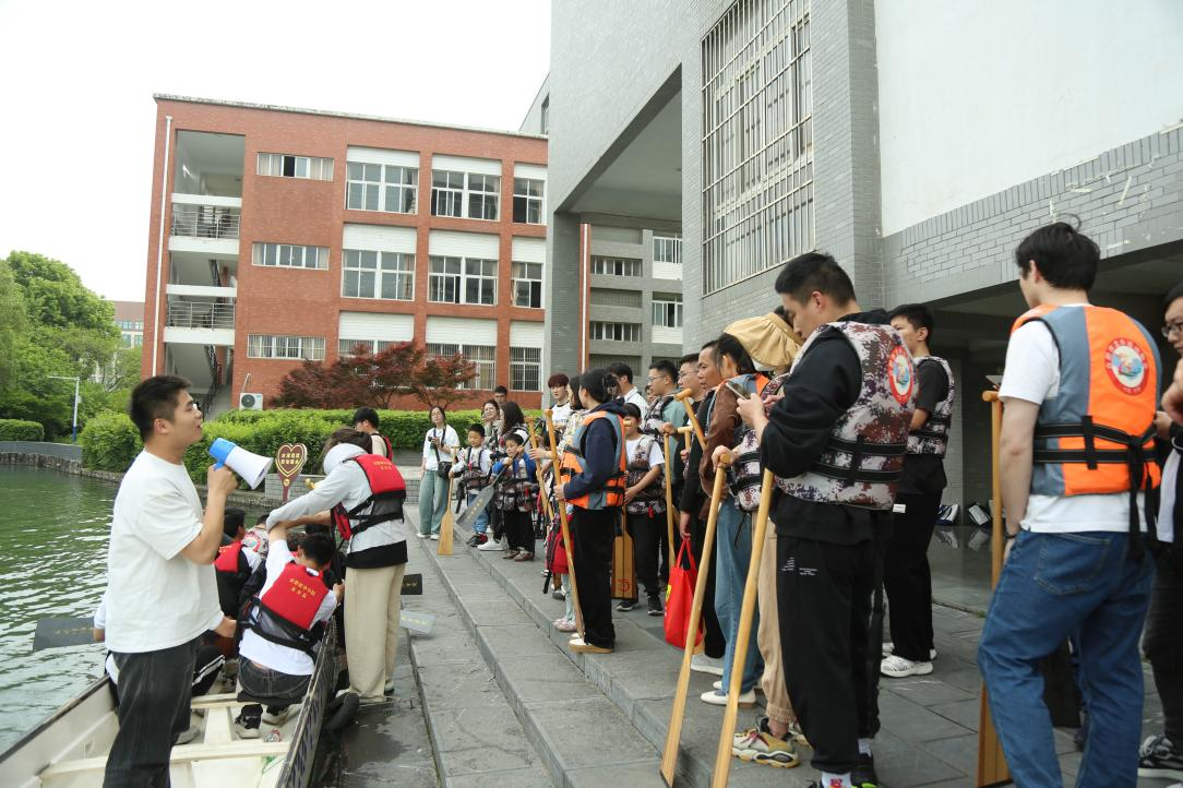 游戏结束后,校友们分成两队分别在校友办老师的带领下,漫步于绿意盎然的校园,重温青春岁月;另一队则来到如琴湖畔,在龙舟队老师的指挥下,酣畅淋漓地体验了一把“龙舟竞渡”的乐趣。