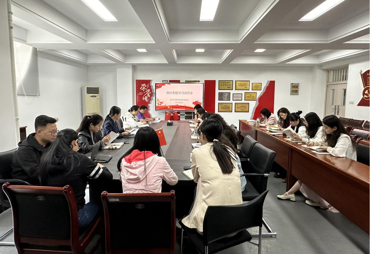 党总支书记洪玉传达了学校党委关于开展党纪学习教育的有关精神和要求,并就学院开展党纪学习教育作动员部署讲话。党总支纪检委员林斗秀领学《中国共产党纪律处分条例》,教育引导党员、干部全面准确掌握《条例》的主旨要义和有关规定。