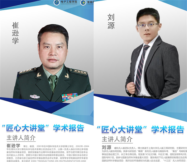 本网讯(通讯员:白志青)5月22日下午,电子工程学院/智能制造学院举办“匠心大讲堂”系列学术报告会,崔逊学教授作《室内/室外导航定位中的新兴技术和前景展望》主题报告,刘源博士作《睿航四海,智协兴邦 ——新时代无人艇发展概述》主题报告。