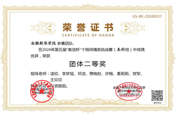 必赢荣获第五届“衡信杯”全国个税师精英挑战赛(本科组)团体二等奖