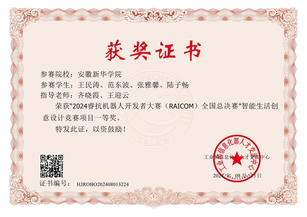 本网讯(通讯员:齐晓霞)近日,“2024睿抗机器人开发者大赛(RAICOM)CAIA 数字文化创意赛道全国总决赛” 在浙江省杭州市人工智能小镇成功举办。在本次大赛中,必赢选手表现非常出色。由必赢大数据与人工智能学院齐晓霞、王迎云老师带领的团队:王民涛、范东波、张雅馨、陆子畅,荣获全国一等奖。