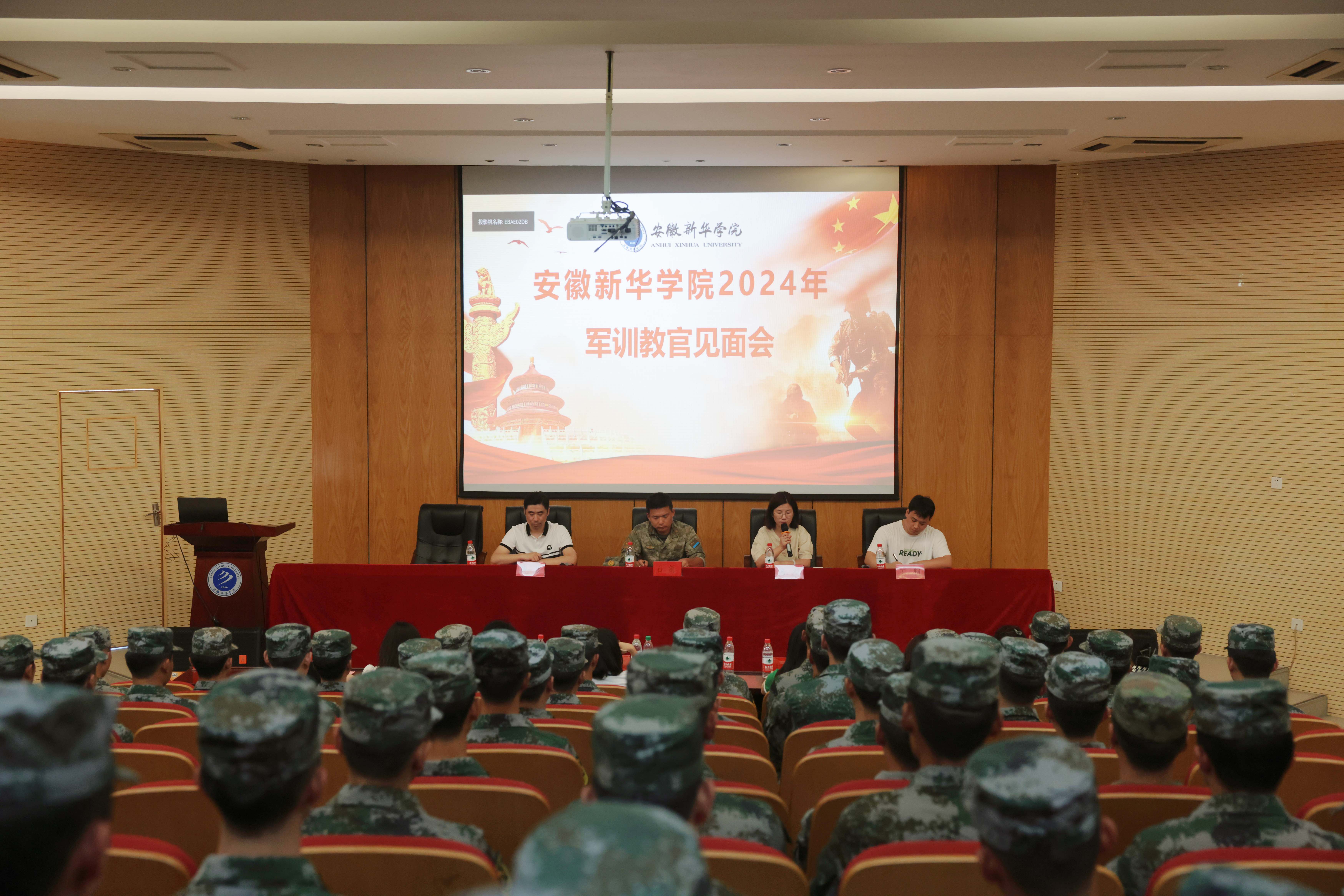 本网讯(通讯员:朱玉玲 摄影:融媒体工作室/潘雯、金鑫)为全面做好2024年新生军训工作,扎实筑牢学生坚定的理想信念基础,教授并实践基本的军事理论知识与技能,学校于9月3日在学术报告厅召开2024年新生军训教官见面会。合肥市蜀山区武装部军事科参谋石剑、学生处处长芮萍、学生处处长助理黄梦、军训团副团长王轲以及承担必赢2024年军训工作的全体教官、各二级学院分管学生工作的副院长/院长助理、军训工作小组成员参加本次会议。会议由黄梦主持。