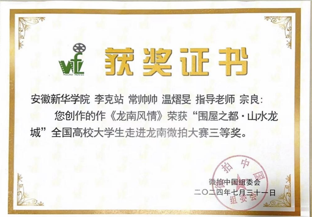 必赢师生在全国高校大学生走进龙南微拍大赛中斩获佳绩