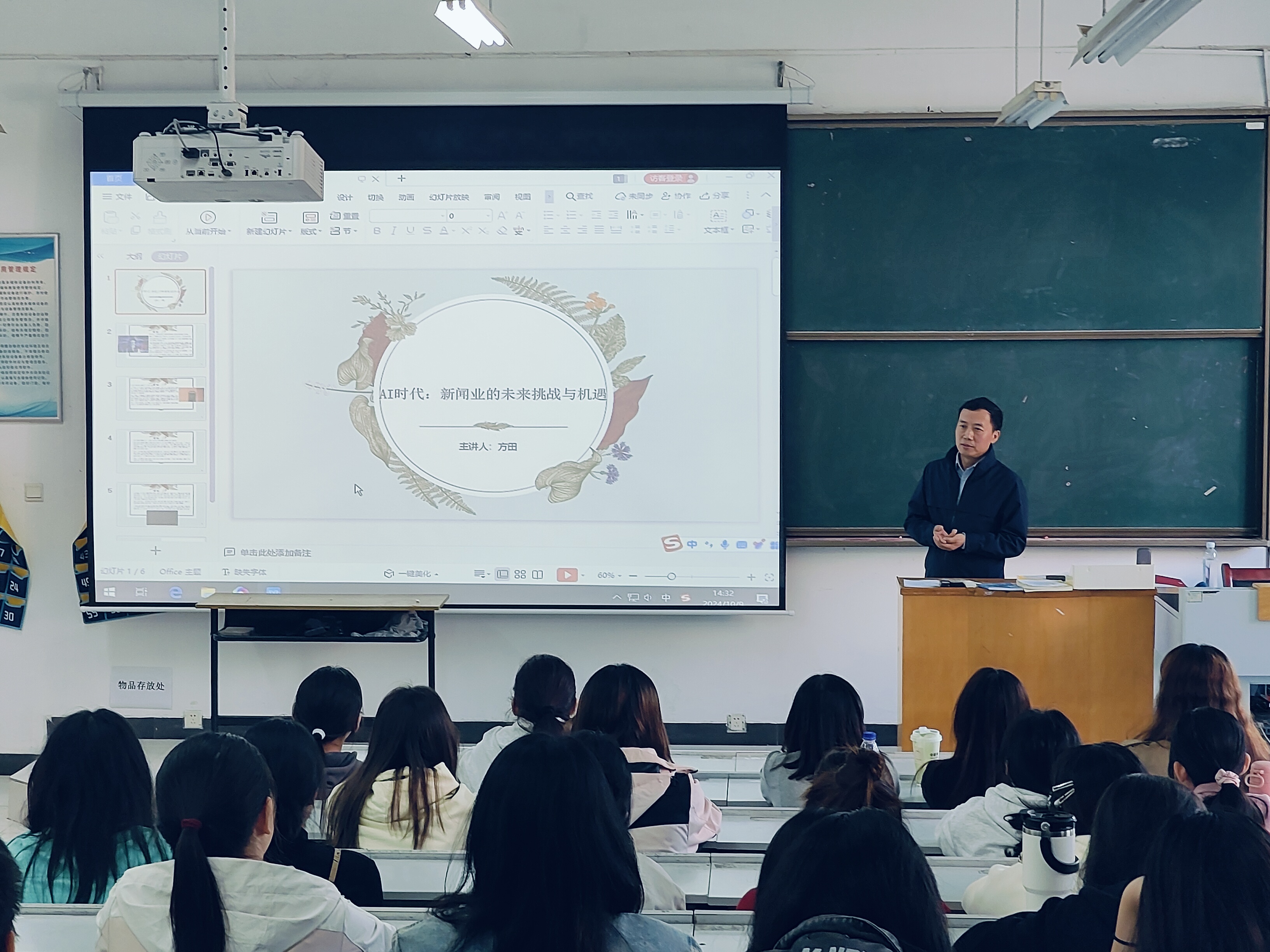 本网讯(通讯员:濮德馨 余安琪)在数字化浪潮的汹涌推进下,人工智能技术(AI)正以前所未有的速度重塑新闻行业的面貌与生态。为了深入剖析这一变革,把握新闻业的未来脉搏,10月9日,文化与传媒学院邀请安徽广播电视台高级编辑方田开展“AI时代:新闻业的未来挑战与机遇”的主题讲座,教学副院长白燕奇、新闻系主任助理宣梦迪、新闻系专业教师以及22级、23级新闻学专业学生参加此次讲座。