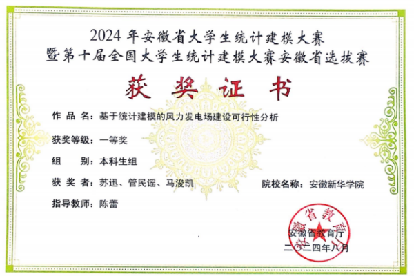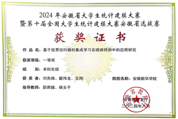 必赢学子在2024年全国大学生统计建模竞赛中喜获佳绩