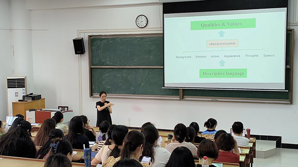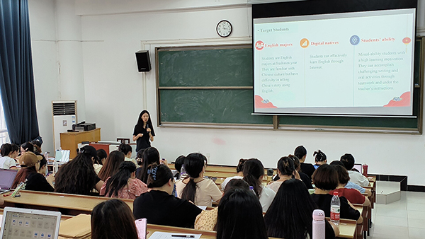 27日下午,林清和牛耕硕两位青年教师进行教学示范,示范内容为“Beat Your Fear”和“Traditional Chinese Clothes - Hanfu”。在教学过程中,两位青年老师以生动、鲜活的教学案例、巧妙的互动和引导,展示出她们的青春风采和独特的教学魅力。