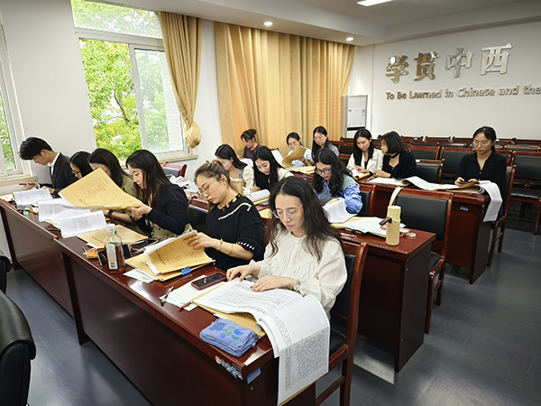 在期末试卷检查过程中,各位成员严格按照学校质量监控与评估处要求《关于开展2023-2024学年第二学期期末考试课程试卷管理质量专项检查的通知》,贯彻落实外国语学院指定的《外国语学院2023-2024学年第二学期期末考试课程试卷检查方案》,从试卷评阅,装订,分析三个方面细致检查2023-2024第二学期的期末试卷,整理入库试卷存在的问题,以便后期进行针对性整改。