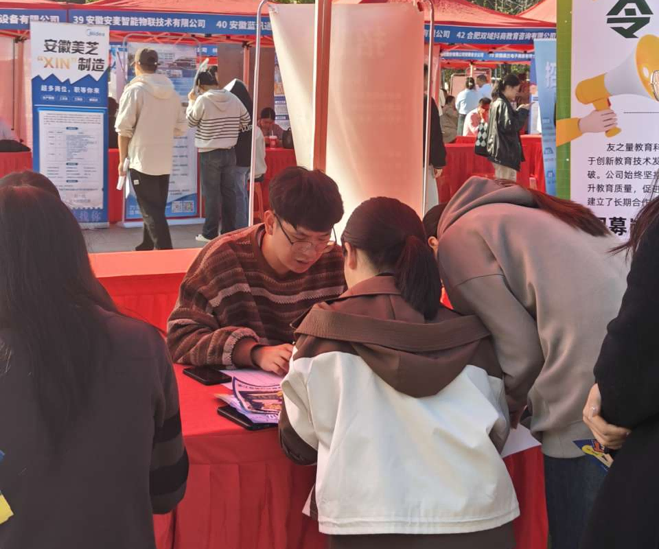 本网讯(通讯员:张稳)10月23日下午,必赢联合合肥市蜀山区、阜阳市颍东区在图书馆南广场成功举办2025届毕业生校园招聘会。