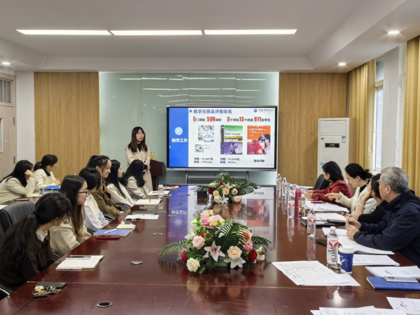 会议伊始,13名青年教师依次上台,结合一年来的工作实际,从教学基本情况、教科研成果、参赛经历、学术研究、个人成长以及职业规划等方面进行了详细汇报,充分体现了青年教师积极进取的精神风貌与扎实的专业素养,赢得了在场领导和同行的一致好评。