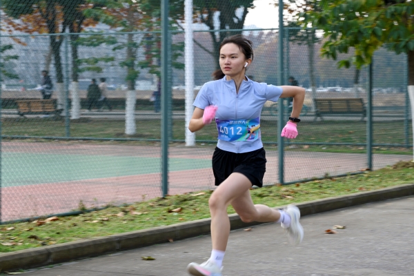 本次比赛以校园秋实路为起始点,经创新大道、冬青路、厚德路、春晓路至终点祥云体育场,全程约5公里。大赛设男、女两个组别,共吸引了来自全校各二级院系近800名学生参赛。为了保障学生的安全,全程每个路口都安排老师进行安全引导。
