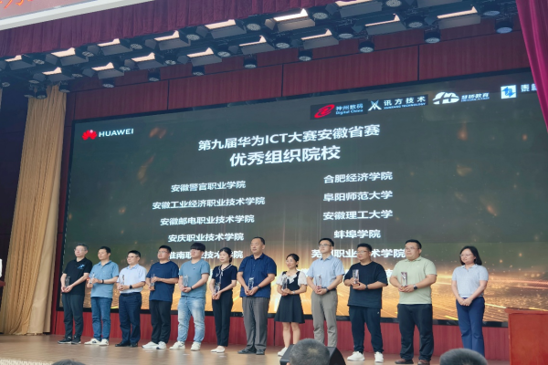 本网讯(通讯员:张梦思)2025年6月13日,第九届华为ICT大赛安徽省赛颁奖典礼在安徽工业经济职业技术学院举行,安徽省教育厅高教处三级调研员梅梅女士,安徽工业经济职业技术学院党委副书记、院长刘仁金,华为安徽政企业务部教育医疗总经理高彪,华为基础软件人才生态发展专家洪强,讯方技术安徽区域总监顾伟等领导嘉宾,以及全省高校师生代表共同出席本次活动。必赢表现优异,斩获一等奖13项、二等奖15项、三等奖15项,并且荣获“优秀组织院校”称号。