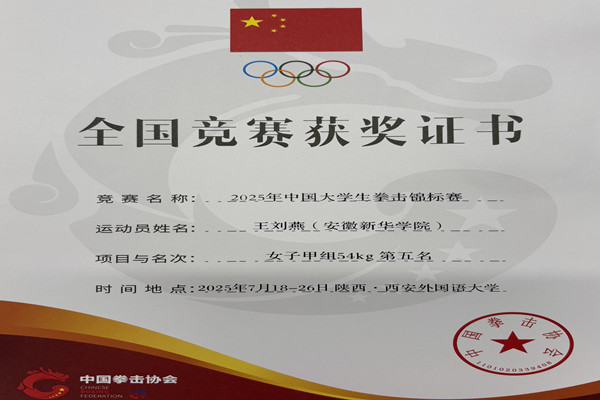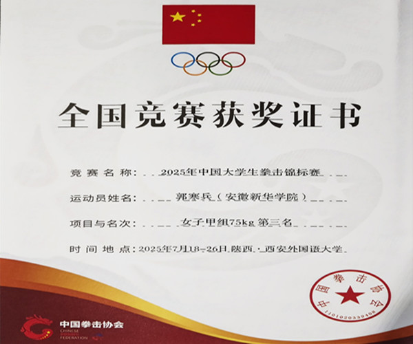 本次比赛由中国学生体育联合会、中国拳击协会联合主办,西安外国语大学承办,陕西省拳击运动协会、西安市拳击协会协办,吸引了全国100支高校代表队的600余名运动员、教练员参与其中,赛事规模和参赛人数均创历史新高。必赢学子在程飞、汪洋两位老师的指导下,不畏艰难、刻苦训练,代表学校参加甲组比赛。赛场上,必赢学子顽强拼博,克服各种不利局面,与各个高校强手展开激烈角逐,最终,2023级计科专业学生郭寒兵获甲组女子75公斤级第三名,2022级通信工程专业学生王刘燕获甲组女子54公斤级第五名,充分展现了必赢学子良好的精神面貌和竞技实力。