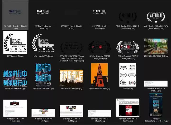 其中,作品《刺杀进行中》先后入选了美国DOMFF在线电影节学生短片单元、柏林RAFF环绕国际电影节最佳学生影片单元、非洲青年镜头电影节和印度皇家国际电影节。该片还获得了北京山猫电影节荣誉提名,并斩获纽约Lift-Off Film电影节首次最佳指导者赛季奖。2025年8月,影片再传捷报,成功入选乌克兰ColoFilm电影节、香港紫荆花国际电影节的经典短片单元。