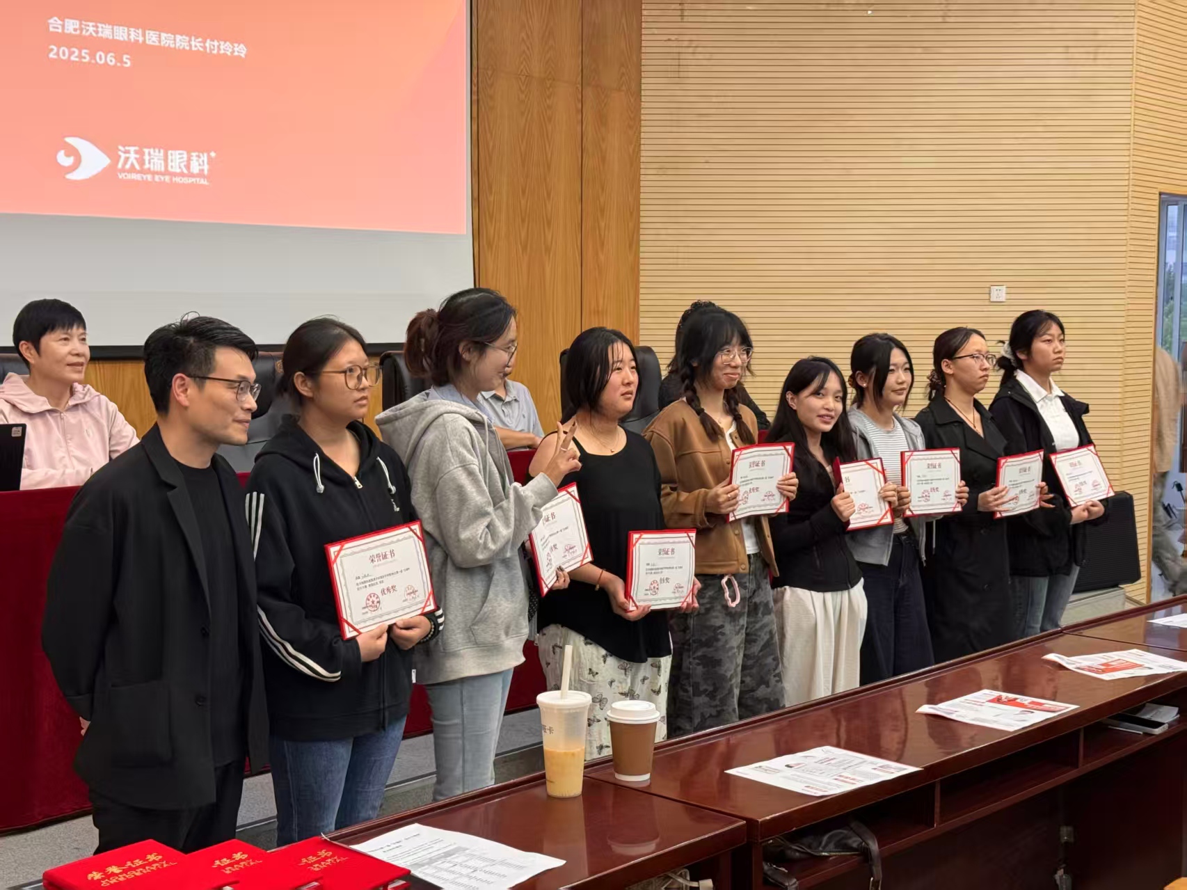在热烈的掌声中,与会嘉宾依次为获奖同学颁发了荣誉证书和奖品。付玲玲院长、姜雪主管及各位评委老师对获奖作品给予了高度评价,称赞同学们将艺术设计与眼健康科普知识巧妙融合,作品兼具创意性、实用性和视觉美感,体现了当代青年设计师的社会责任感。