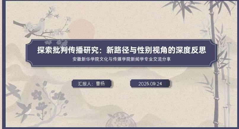 此次研讨会不仅实现了暑期学校学习成果的有效转化,更搭建了学院新闻学专业教师的学术交流平台。参会教师纷纷表示,将以此次研讨为契机,进一步深化批判传播研究与性别视角的融合探索,为推动学院新闻学专业学术创新与人才培养注入新动能。、