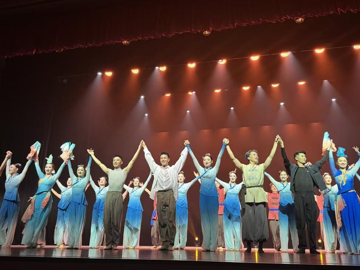 当晚的安徽艺术剧场灯火璀璨,6支原创舞蹈作品接连登场,为师生们呈现了一场兼具艺术高度与文化深度的视觉盛宴。群舞《难忘那盏灯》以灵动舞姿复刻小岗村十八位庄稼汉"敢为天下先"的历史瞬间,让师生们在肢体叙事中读懂时代精神;群舞《风摆柳》深耕花鼓灯"脚下梗着走、上身风摆柳"的传统动律,将淮河两岸的人文气韵与当代审美完美融合,展现出传统文化创造性转化的鲜活生命力。
