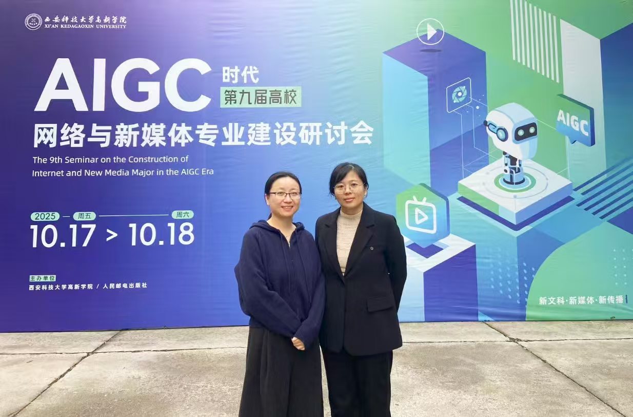本网讯(通讯员:金燕娇、李理)近日第九届高校网络与新媒体专业建设研讨会在陕西西安科技大学高新学院举办,文化与传媒学院网络与新媒体专业教师李理、金燕娇参会。