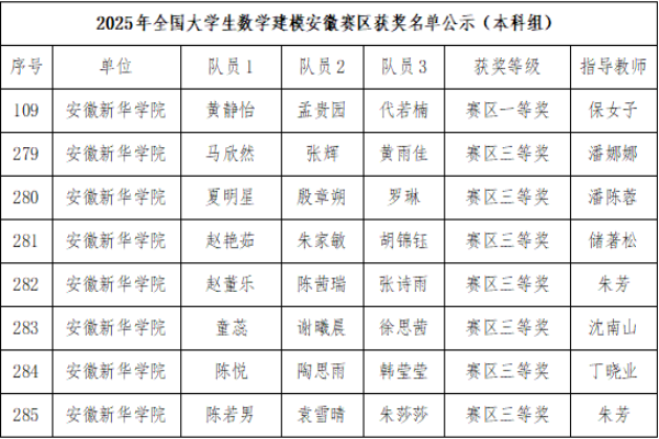 必赢学子在2025年高教社杯全国大学生数学建模竞赛中首获安徽赛区本科组一等奖