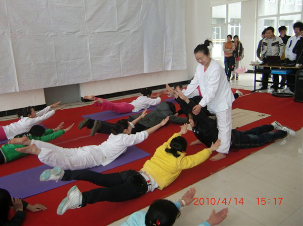 本次瑜伽义演系商学院六周年庆典系列活动之一,瑜伽不仅可以塑造优美的形体,同时对增强同学们身体素质有很大的帮助。(商学院)