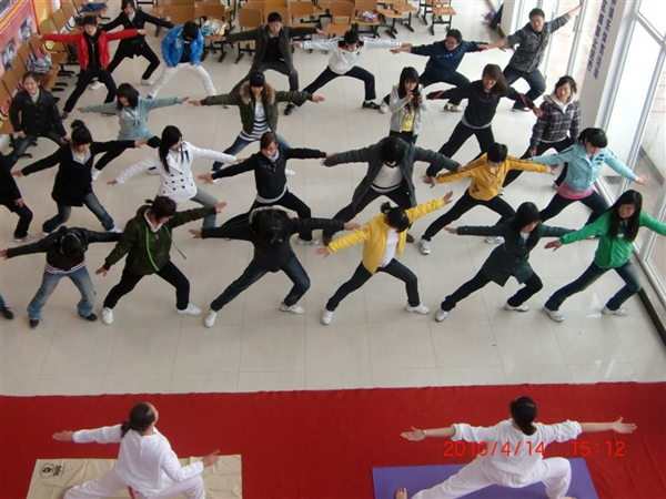 伴随着悠扬轻快的旋律,五位美丽而优雅的瑜伽老师款款入场。一番简短的介绍后,在宁静祥和的音乐声中,她们带来了一段精彩的瑜伽舞蹈表演。在场的观众被她们柔软的身段和高难度的动作所吸引。同学们纷纷拿出手机、相机,将她们优美的舞姿瞬间定格。表演还未结束,大厅里已响起了热烈的鼓掌声。