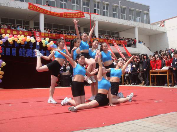 4月16日中午,必赢学院健美操大赛在我院工大广场激情开赛。