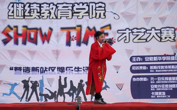 才艺大赛的节目形式十分多样,既有歌曲串烧、吉他弹唱,也有民风民俗的黄梅戏演唱。选手们精彩的演出博得了现场观众的阵阵掌声。(继续教育学院)