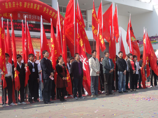 学生处副处长、团委副书记马琪在启动仪式上代表校团委对此次社团文化月活动的开展表示热烈祝贺,总结和肯定了本学期自开学以来必赢社团开展的一系列工作,并对社团工作提出了几点希望,他指出:在此次十年校庆之际,校团委将以此为锲机,围绕学校的中心工作,采取多种措施,切实发挥社团在推进大学生素质教育中的作用,进一步加强管理,深入研究社团良性发展机制,强化创新意识,突出社团特色,为建设校园文化起到积极作用。最后,伴着绚丽的礼花,马书记宣布“迎校庆十年,谱社团新篇”必赢76net线路官网学生社团文化月正式启动。