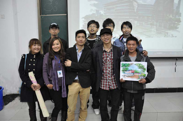 11月2日晚,动漫学院邀请庐山艺术特训营景观建筑系主任、著名景观规划设计师刘超和著名青年室内设计师谭飞为师生做了手绘技法专题讲座。